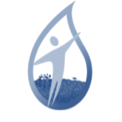 Es una persona con seguridad hídrica y alimentaria representadas por una gota de agua y la milpa en un horizonte luminoso.